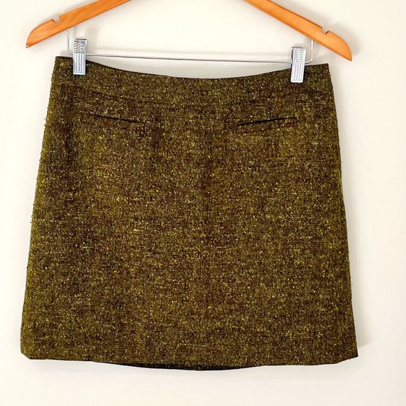 Ann Taylor LOFT Green Melange Speckled Wool-Blend Pocket Front Mini Skirt. Size