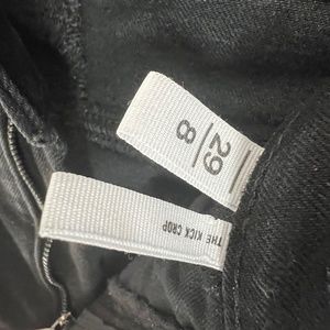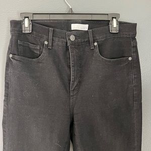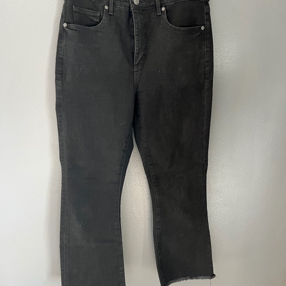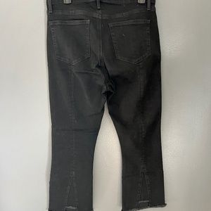 Ann Taylor LOFT High Rise Kick Crop Jeans with a frayed hem and zip fly in black. Medium to high stretch in size 29/8.