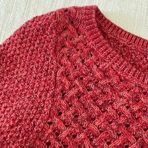 A beautifully textured Ann Taylor LOFT sweater in a rich berry-red heather tone. Featuring a woven lattice knit upper yoke, long sleeves, soft ribbed trim, and full 100% cotton construction for breathable, comfortable wear. Warm yet lightweight — perfect for layering through fall, winter & early spring.