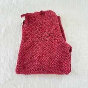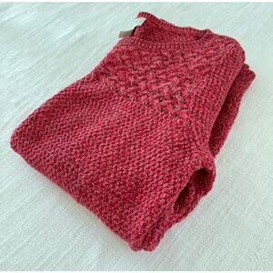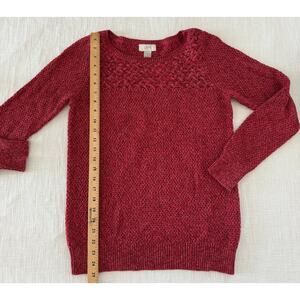 Ann Taylor LOFT Textured Knit Sweater – 100% Cotton – Red Berry Heather – Size Small