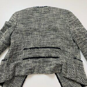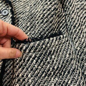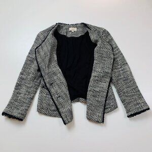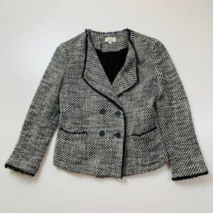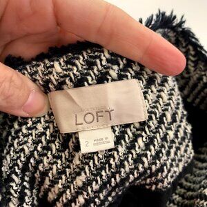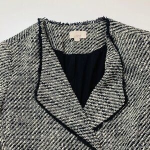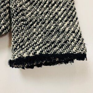 Ann Taylor LOFT Jacket BlazerTweed Black White Fringe Double Breast Knit Cardiga