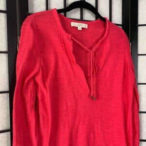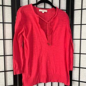 Ann Taylor LOFT Knitted Tie V-Neck Quarter Sleeve 3/4 Blouse Top Pink Small