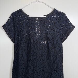Ann Taylor LOFT Lace Shift Dress Women’s 10 Navy Short Sleeve Lined Cocktail