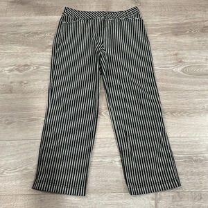 Ann Taylor LOFT Laura Striped Cropped Pants With Floral Trim Detail in size 2. Excellent like new condition, zipper, button and bar and clasp front closure, 2 front pockets, stretch fabric. Floral trim accent is navy and white. Please see photos for approximate measurements and details. Item may show a difference in color based upon photography and perception. Photos are part of the description, as everyone’s level of condition may vary. From smoke free and pet free home. All packages are shipped the same or next business day.