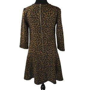Add a bold and modern twist to your wardrobe with this Ann Taylor LOFT Leopard Print Dress in a rich golden brown and black color palette. This flattering jacquard knit piece features a drop waist and flared skirt that creates movement and style, making it a perfect choice for work, dinner dates, or fall outings.