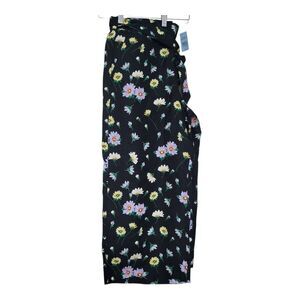 Ann Taylor LOFT Linen Blend Black Floral Wide Leg Crop Pants L Petite NEW