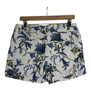 Ann Taylor LOFT Linen Blend Floral Print Shorts size 2 Cream/Blue