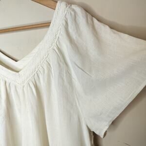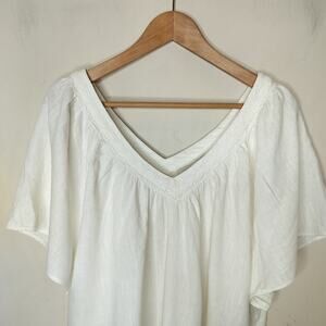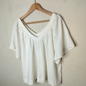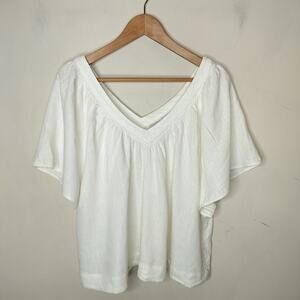Ann Taylor Loft white linen blend short sleeve top. Size XL. 79% viscose, 21% linen. (23128)