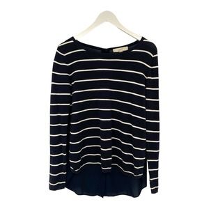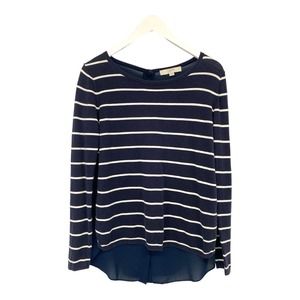 Ann Taylor LOFT Long Sleeve Blouse Sheer Button Back Striped Navy White Sz M
