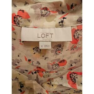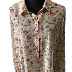 Ann Taylor LOFT Long Sleeve Sheer Cream Red Floral Button Up Blouse, Sz XL