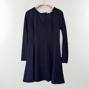 Ann Taylor LOFT Long Sleeves V Neck Doubleface Flare Dress Size 8 Black