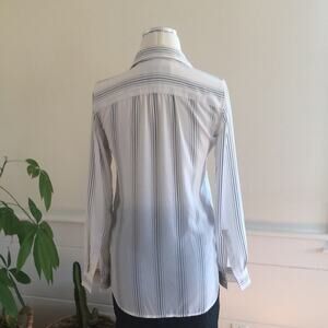 Ann Taylor LOFT Long Striped Blouse Tunic Top Black Cream Vertical Stripe XXSP