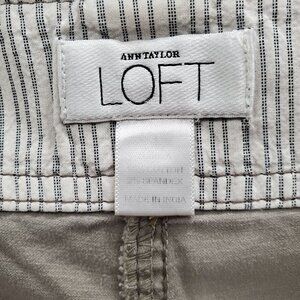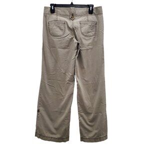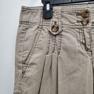 Ann Taylor LOFT Marisa Beige Pleated Front Roll Tab Flare Wide Leg Pants Size 4
