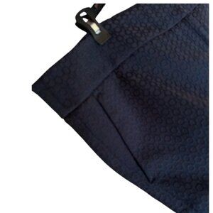 These sophisticated Size 14 dress pants feature a modern geometric print in a versatile navy blue, perfect for creating a polished professional look or a smart casual ensemble. The tailored straight leg offers a flattering fit, making them an elevated basic for your capsule wardrobe. Ideal for the office, business meetings, or any occasion requiring classic style and everyday elegance. Excellent condition, ready to be your next favorite pair of statement pants!