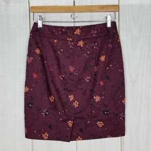 Ann Taylor LOFT Maroon Pink/orange floral Print Mini Skirt.