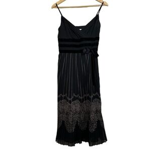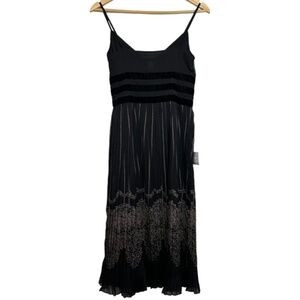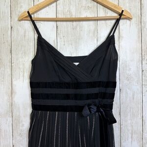 Ann Taylor LOFT Midi Dress Womens 2 Black Pleated Empire Waist Velvet Ribbon NEW. Whimsigoth, Goth, Fairy, Party/Cocktail, Grunge, Formal