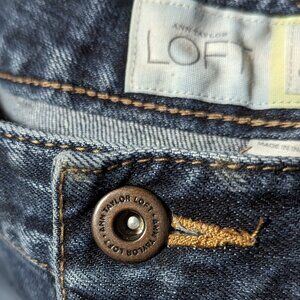 Ann Taylor LOFT original boot Cotton blend stretch jeans, Size 8. Mid-Rise. Details: Front zip with button closure. Belt loops. Five pocket styling.