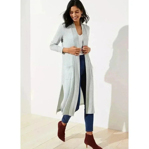 Ann Taylor LOFT Mint Green Ribbed Pocket Duster Cardigan Sweater