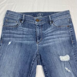 Ann Taylor LOFT Modern Skinny Denim Distressed Jeans Womens Size 29/8. Great condition! Has functional front and back pockets with zippered button closure and belt loops. Size 29/8 Waist 29.5 Rise 9 Inseam 29 Measurements approximate Bin # 27
