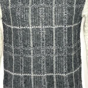 Snuggle up in this ultra-soft Ann Taylor LOFT sweater featuring a mohair blend for warmth and comfort. The light grey sleeves and back perfectly frame the patterned front with shades of light and dark grey, adding subtle elegance to your cozy wardrobe.