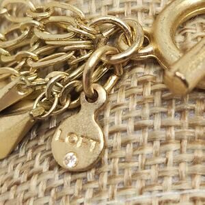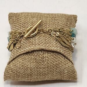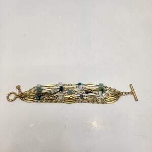 Ann Taylor LOFT Multi Chain Bracelet Gold Tone Teal Glass Beads Toggle Closure
