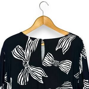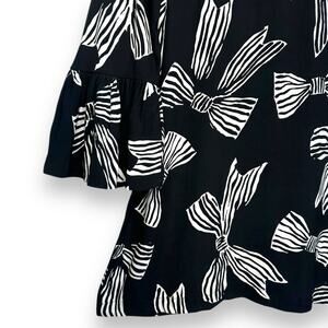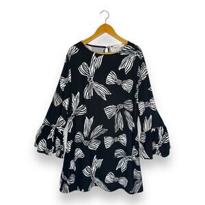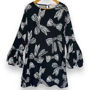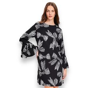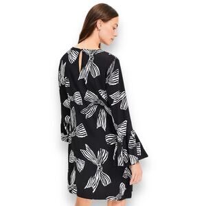 Ann Taylor LOFT NWT Women Bow Flounce Cuff Mini Dress L Black White Bell Sleeve