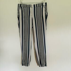 Ann Taylor LOFT Olive Green Blue Cream Casual Striped Jogger Pants Size 4