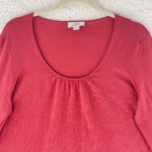 Ann Taylor LOFT Orange Long Sleeve Scoop Neck Shirt Womens Stretch Size Large