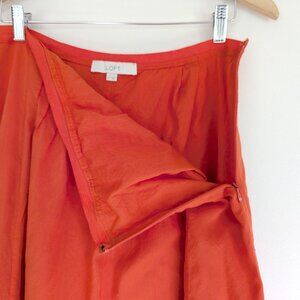 Ann Taylor LOFT Orange Skirt High-Waisted Flowy Midi Skirt Boho Minimalist