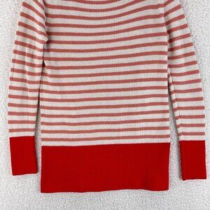 Ann Taylor LOFT Orange Striped Knit Pullover Sweater Womens Crew Neck Size M