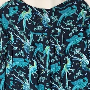 Ann Taylor LOFT Peacock Print Long Sleeve Blouse, Navy Blue/Teal Sz XS, NWT