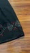 Beautiful Ann Taylor LOFT Petites black A-line skirt in size 0P featuring intricate embroidered detailing along the hem. The embroidery includes red and white stitched florals and geometric motifs, giving it a chic, polished, and slightly boho feel. Fully lined for comfort with a structured, flattering shape.