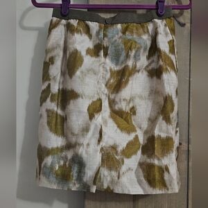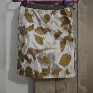 Ann Taylor LOFT Petites Ramie Pencil Skirt Green Beige Abstract Print Size 2P