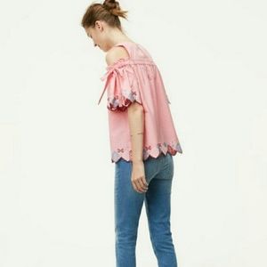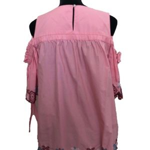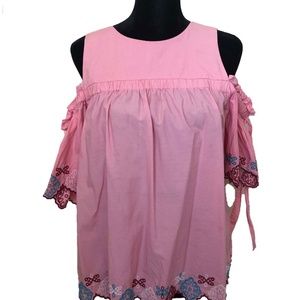 Ann Taylor LOFT Pink Cold Shoulder Embroidered Top