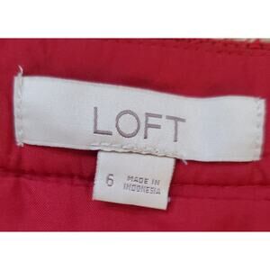 Like new, clean perfect condition. This Ann Taylor LOFT skirt is a stylish addition to your wardrobe. The pink, red, orange, and brown striped pattern adds a pop of color to any outfit. The snap and button closure and wrap style give the skirt a flattering fit.