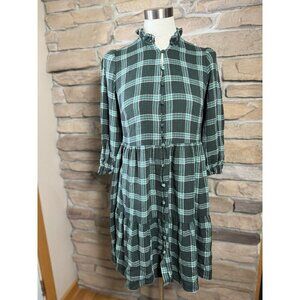 Ann Taylor LOFT Plaid Ruffle Button Swing Dress in Spring Pine Womens S Green