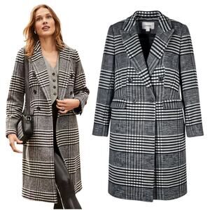 NEW Ann Taylor LOFT Plaid Wool Double Breasted Coat Black White Women Size M