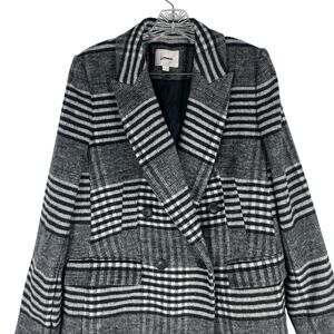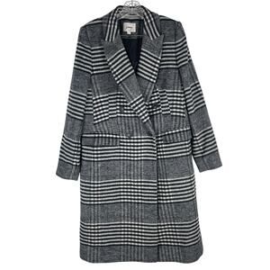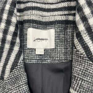 Ann Taylor LOFT Plaid Wool Double Breasted Coat Black White Size M