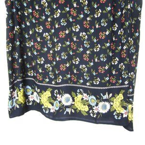 Really beautiful LOFT tunic length top in a bright floral print with navy blue background. Suitable for career wear, business casual or everyday casual. Dress it up or down. Would look great with white bottoms, too. Lightweight.