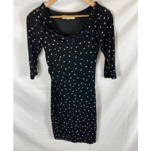 Ann Taylor LOFT Polka Dot Scoop Neck Ruched Side Dress Black Size XXS
