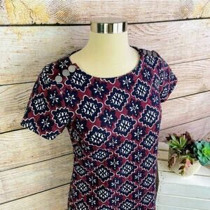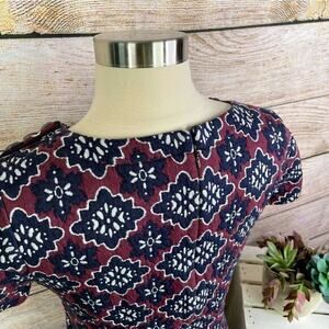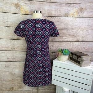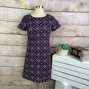 Ann Taylor LOFT Purple Red Round Neck Short Sleeve Shift Mini Dress Size 0