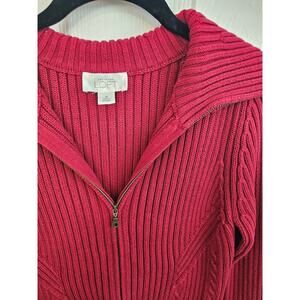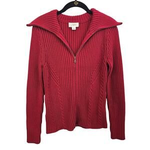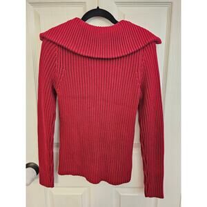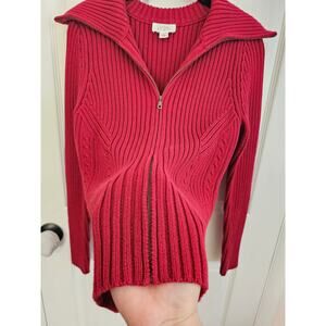 Ann Taylor LOFT Red Fold Over Collar Ribbed Zip Sweater Size M