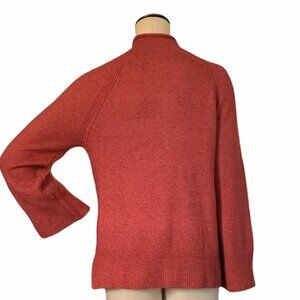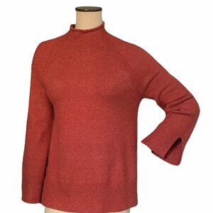 Ann Taylor LOFT Women's Mock Neck Sweater. This stylish women's red sweater features a rolled mock neck that gives it a relaxed, modern look. Made from a soft brushed knit fabric, it offers comfort and warmth with a polished finish. The silhouette includes split side hems for easy movement and a flattering drape, plus flared sleeves with slit for added style. See pictures as part of description.