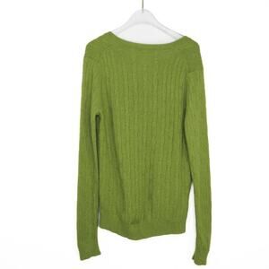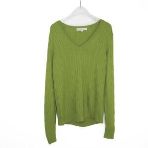 Ann Taylor LOFT Sheen Green V-Neck Cable Knit Sweater Medium