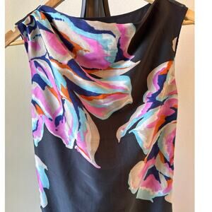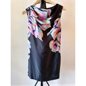 Ann Taylor LOFT Size 4 Dark Gray Colored Floral Shift Dress Career Cocktail