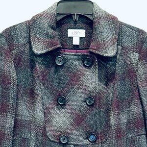 Ann Taylor LOFT Size 6 Purple/Gray Plaid Wool Blend Pea Coat/Jacket