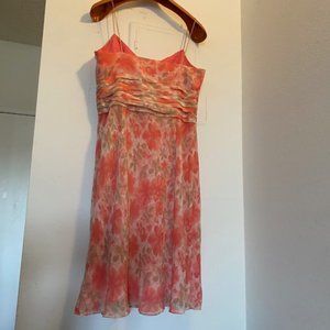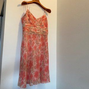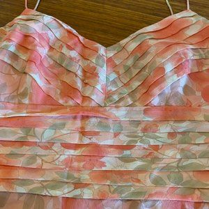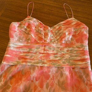Ann Taylor LOFT Size 8 Pink/Peach/Sage Silk Spaghetti Strap Pleated Floral Dress