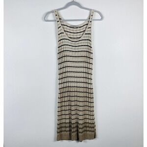Ann Taylor LOFT Size Large Striped Sleeveless Sweater Knit Tank Dress Tan