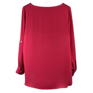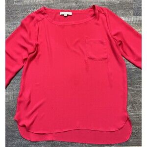 Ann Taylor LOFT Size M Solid Hot Pink Long Sleeve Boat Neck Pullover Blouse
