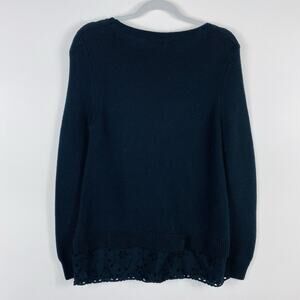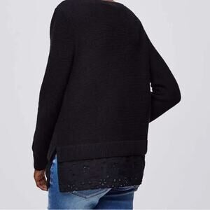 Ann Taylor LOFT Size Medium Layered Look Eyelet Hem Sweater Black 100% Cotton